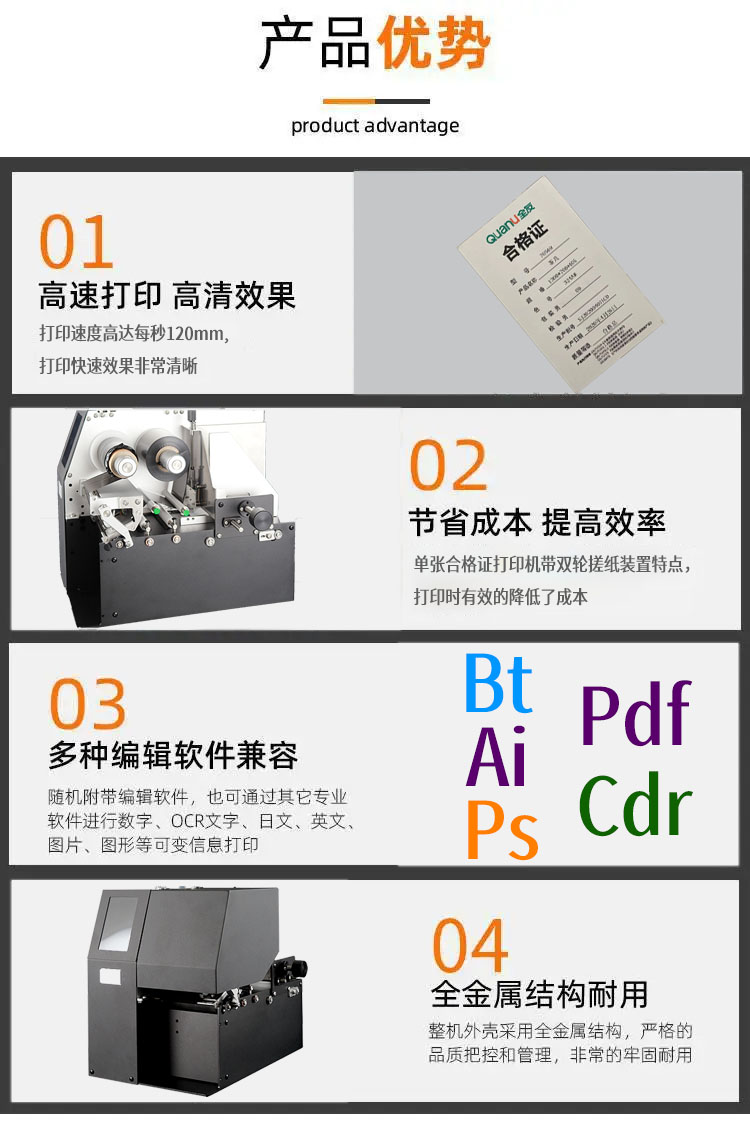 權昌QC-90經濟型單張合格證打印機專為大批量、高頻率的合格證打印場景打造,結構堅固、維護簡單,是工廠、質檢部門及包裝線實現高效、低成本單張打印的可靠選擇。